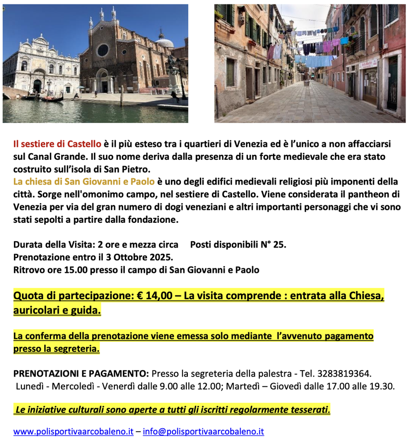 PASSEGGIATA SESTIERE DI CASTELLO CON VISITA GUIDATA ALLA CHIESA DI SAN GIOVANNI PAOLO