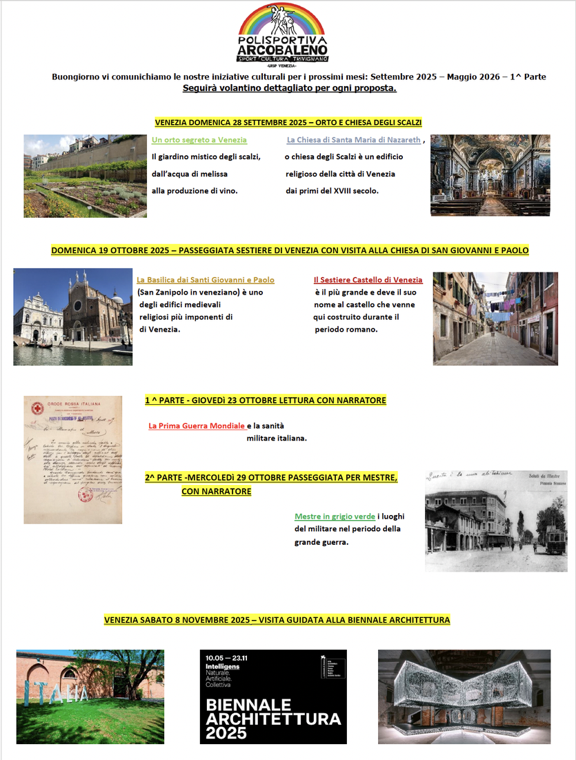 LA SEZIONE CULTURALE VI INVITA: