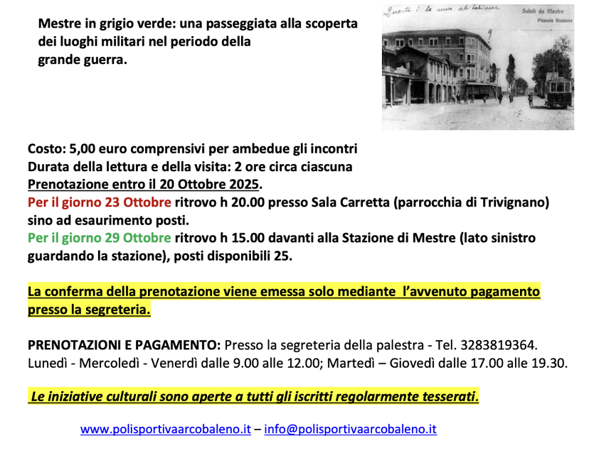 MERCOLEDÌ 29 OTTOBRE: PASSEGGIATA PER MESTRE CON IL NARRATORE